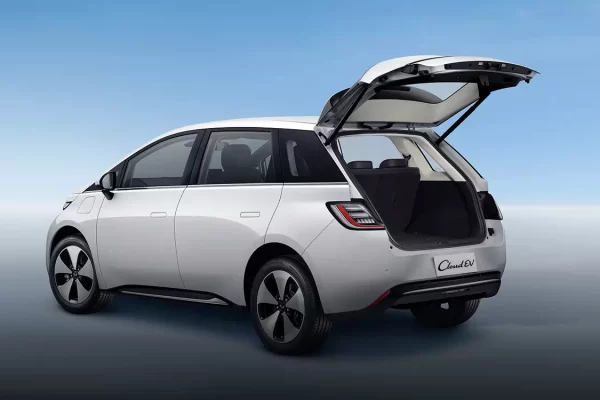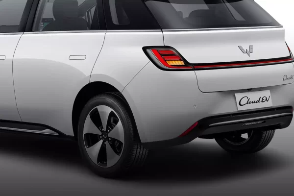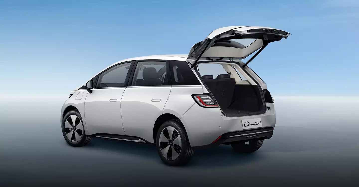 Pada bagian bodi samping Cloud EV terdapat lekukan halus, yang mana desain ini menonjolkan fitur lampu depan dan lampu belakang yang unik. Di sisi lain, tampilan ini juga mengedepankan perpaduan estetika teknologi yang minimalis.
